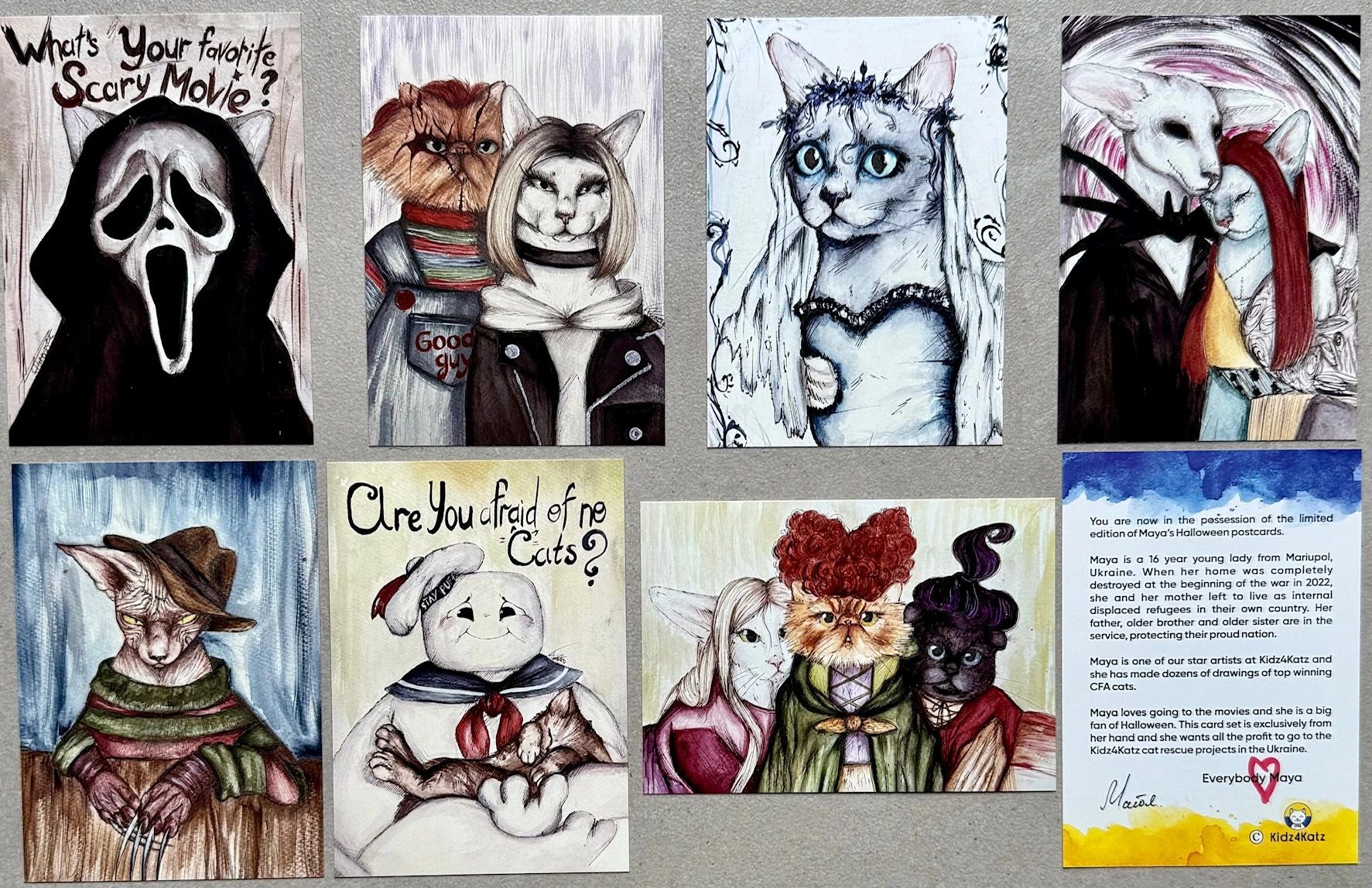 We can send you any of the Kidz4Katz postcard sets for 20$